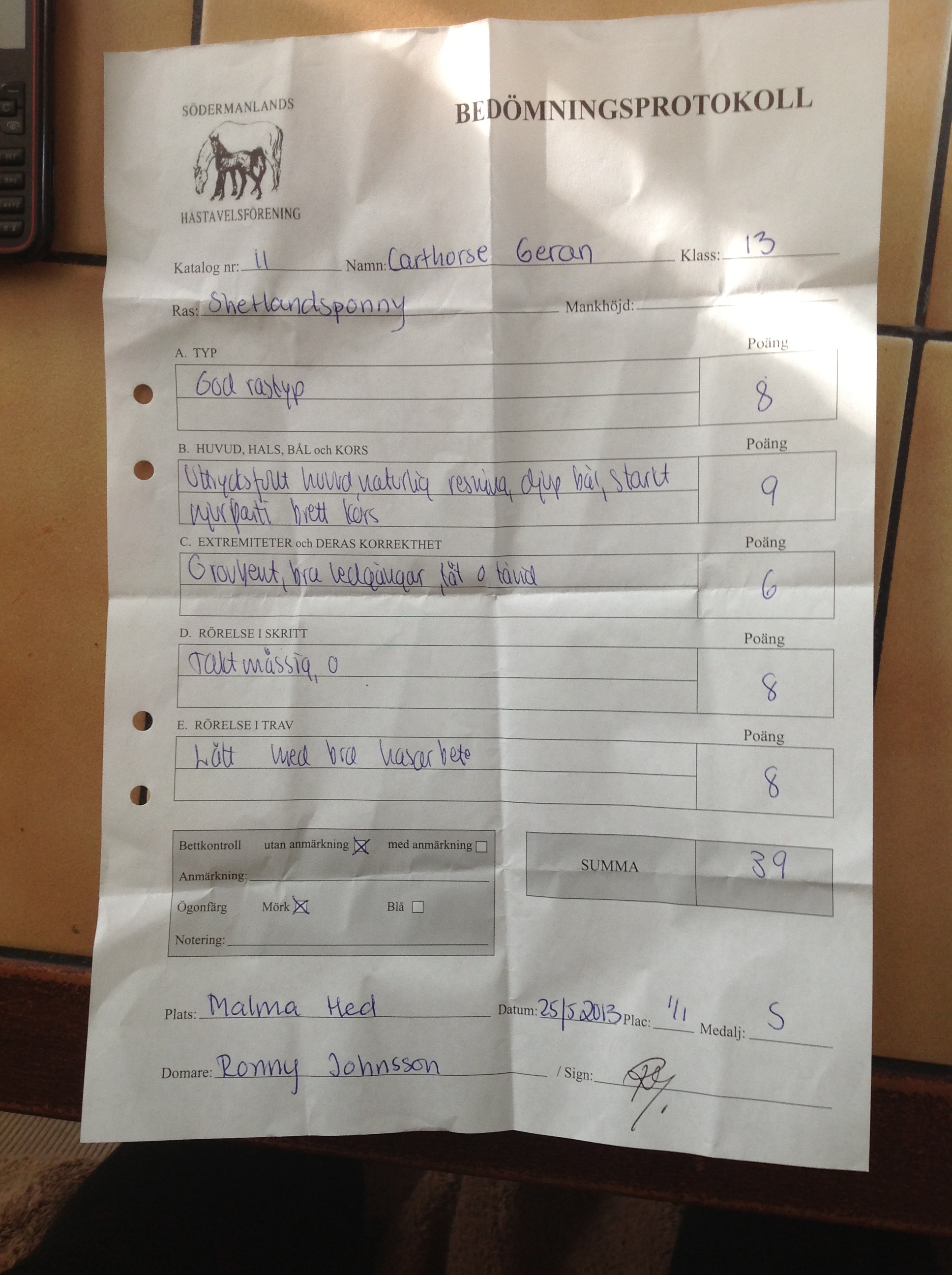 Har varit dåligt med att uppdatera bloggen måste jag erkänna, men det är lite mycket nu kan man säga. Göran och jag hade som sagt tävlingsdebut i lördags och han skötte sig exemplariskt på alla plan. Vi fick bra och goda omdömmen i körningen, men som jag visst så är det hans styrka som saknas och vår rutin. Men för att bara var 4 år är han riktigt duktig.