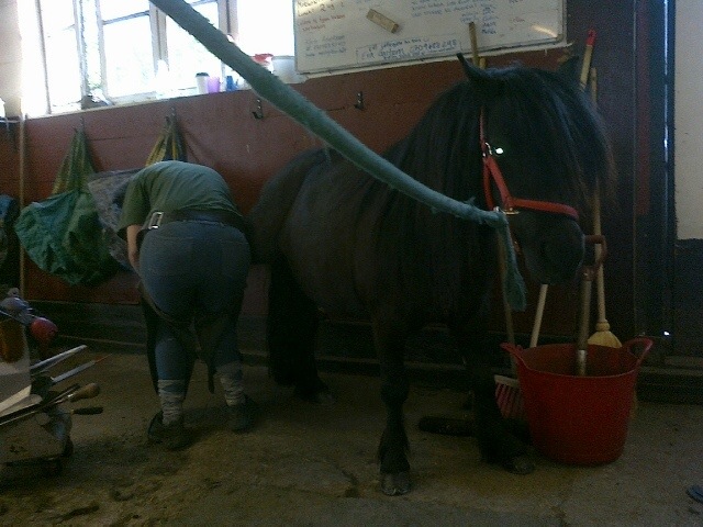 Jag och Marcus packade ihop oss i bilen och åkte till stallet, min plan var att kanske börja tvätta boxen eller vagnen. Mon och Marcus plan var inte den samma kan jag avslöja. Han sov i ca 10 minuter i bilen och tyckte han hade sovit klart när jag lyfte över honom i vagnen.