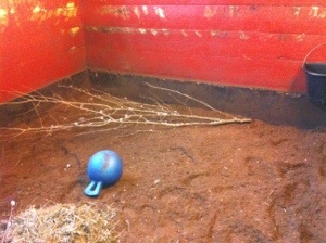 Idag var jag och Göran ute och hämtade pinnar som de kan gnaga på i boxar och hagar. Nu låter det som om vi hämtade massor med pinnar, men vi hämtade ca 10 stycken i olika längder och bredder.