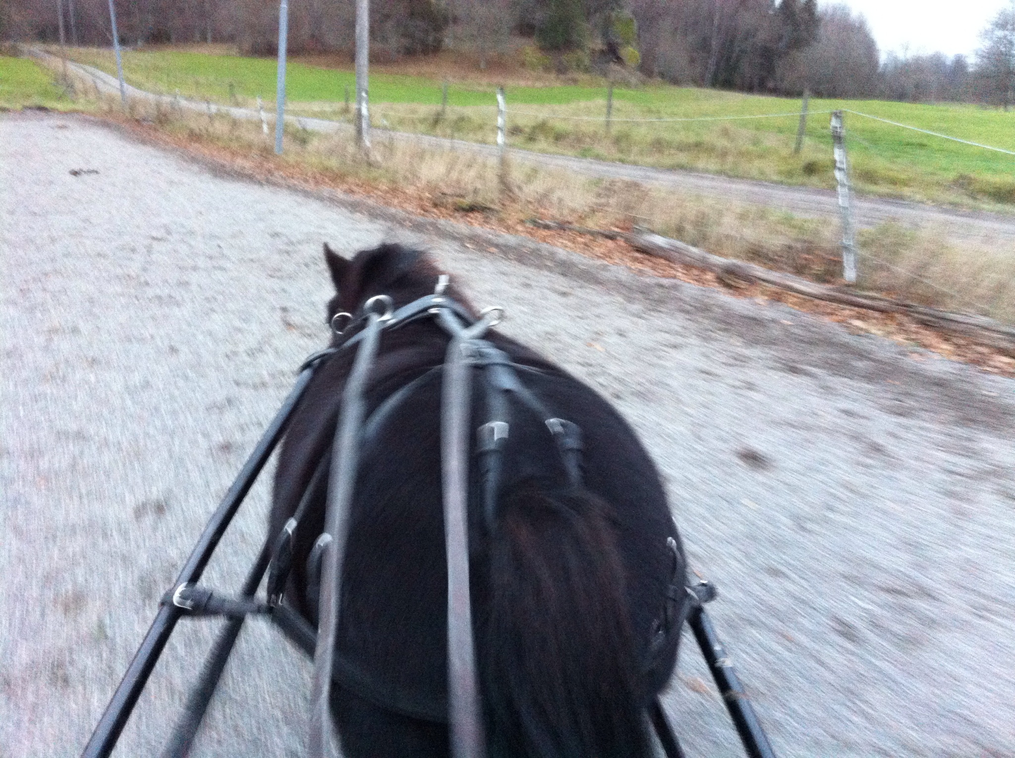 Igår kväll kom det en rejäl dimma, hade bestämt mig för tömkörning på ridbanan. Tur att jag tog reflexerna på Göran för det var det enda jag såg i dimman, så tjock var den.