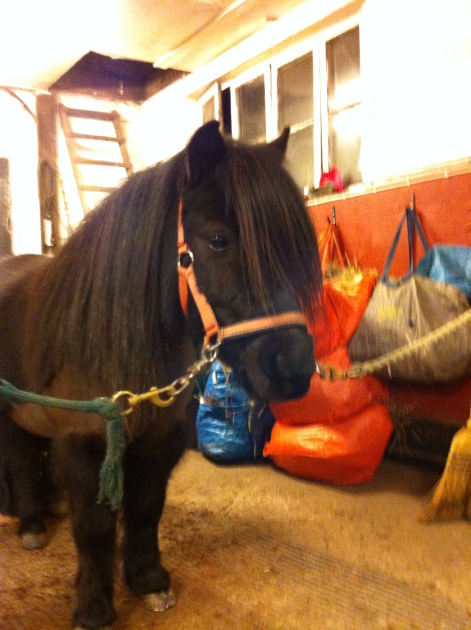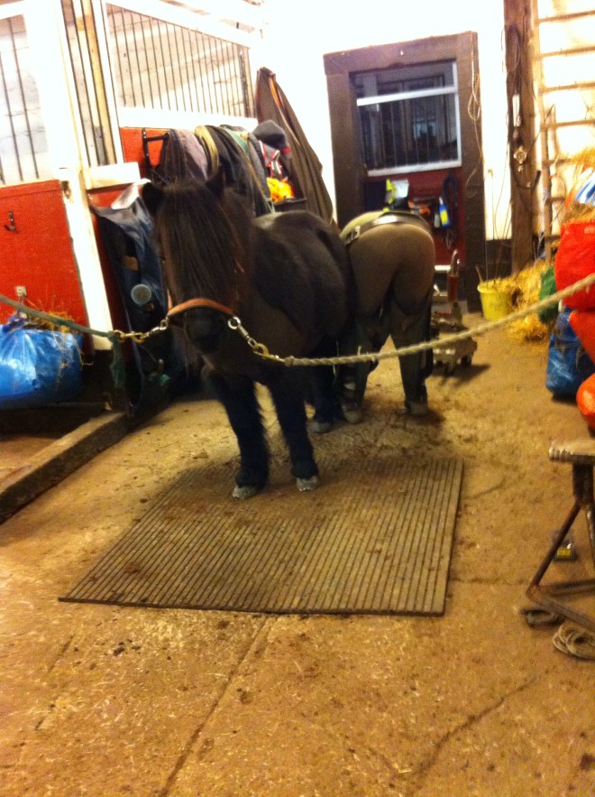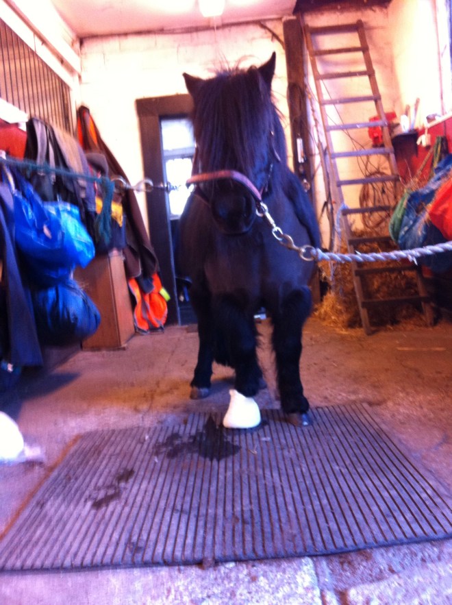 Idag när jag kom till stallet hade han faktiskt omslaget kvar, det är inte alltid det fått sitta kvar… Vi var även ute och gick en liten sväng idag och han gick mycket bättre, så han fick vara utan omslag i natt.