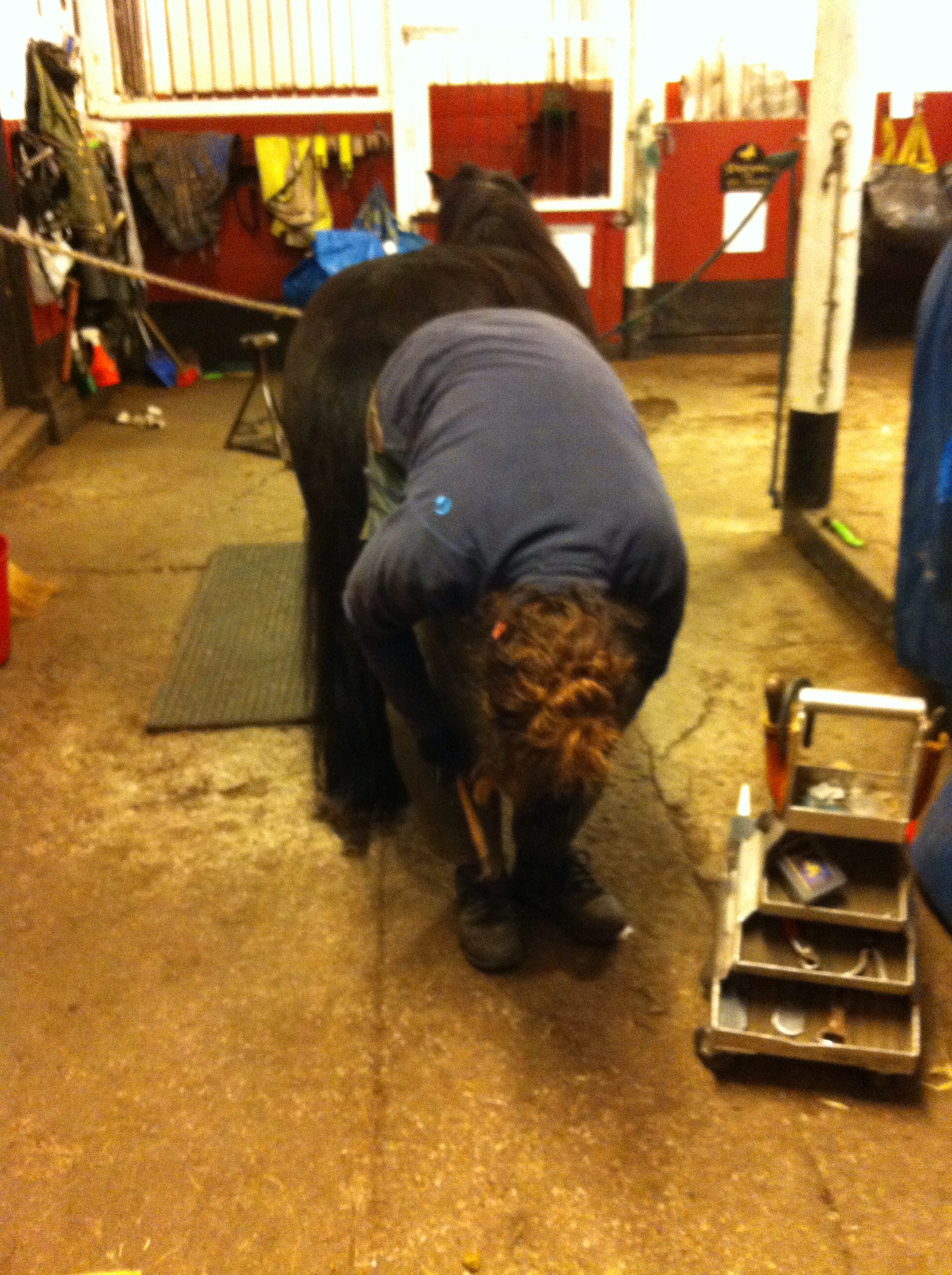 Igår kom hovslagar-Lena och skodde om Göran. Vilket var välbehövligt då höger framsko åkte av i fredags.