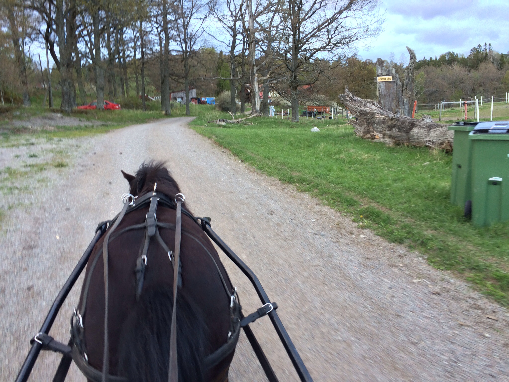 Göran och jag satte på sele och vagn och tog en halvlång tur ut och förbi Balingsta stallet. Så väldigt fint väder och vamt, +13 klockan 20.00, helt underbart.