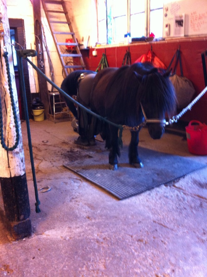 Igår var hovis Lena i stallet och skodde om en betestrött Göran.