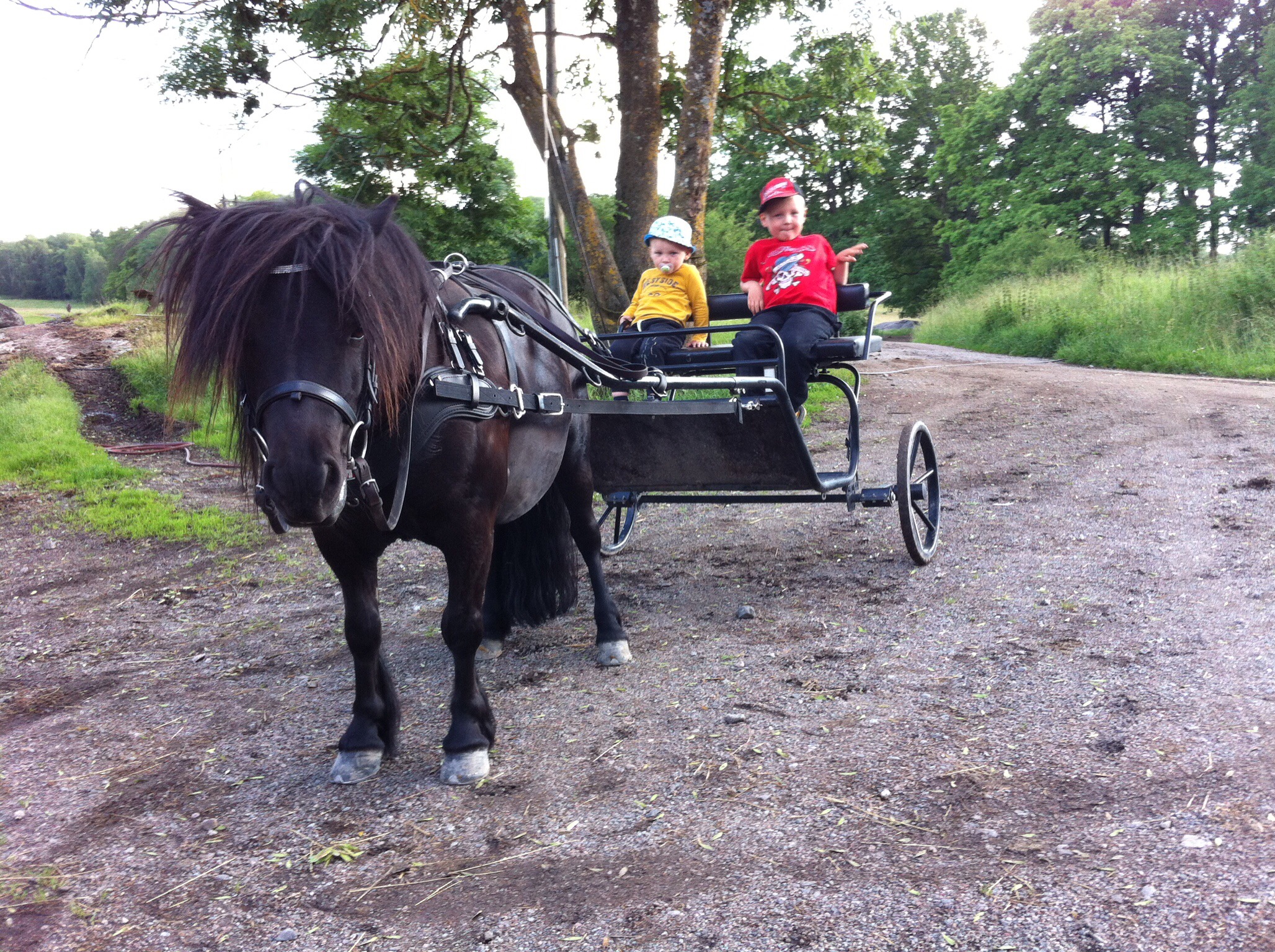 Igår åkte jag och barnen ut till Göran för att han skulle få jobba lite. Vi satte upp tre bommar som han fick ”hoppa” över. Mest för att han skulle få lyfta på benen, som är så jobbigt att göra när man går på bete enligt Göran själv. 😀