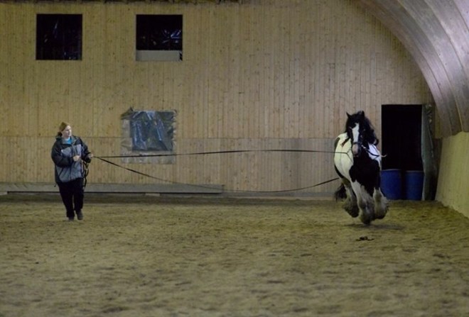 Han är en härlig häst att tömköra då han är väldigt alert och lyssnar, samtidigt som han är frågvis. Han testar om man verkligen är säker på att man vet vad jag håller på med, vilket är himla bra egenskaper hos en häst och jag som tömkörare verkligen måste koncentrera mig till 100% på hästen.