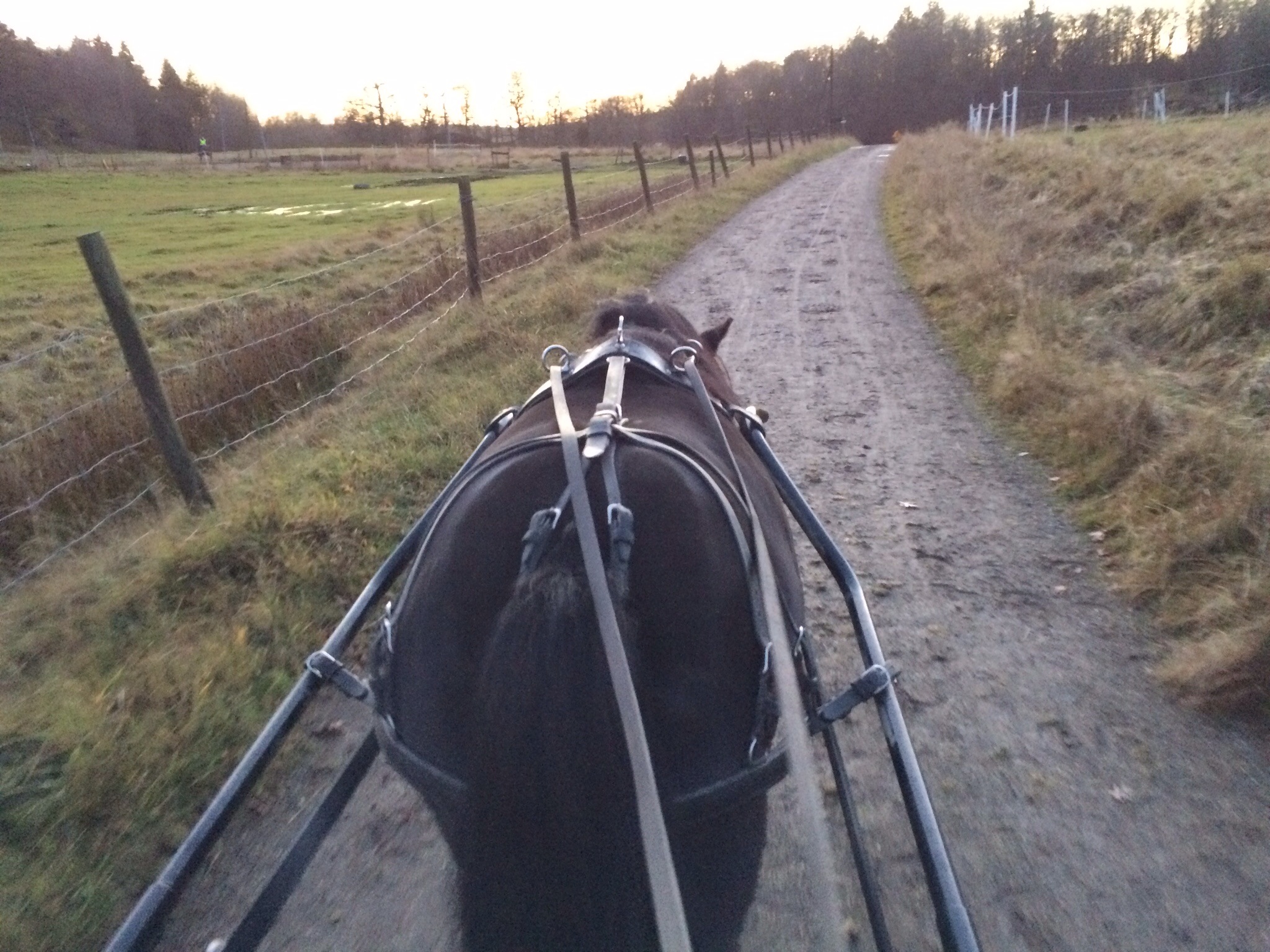 Kände redan när vi började skritta att det var lite motigt där fram och att jag fick driva fram honom med rösten ganska mycket. Så även i traven och galoppen var inte vägvinnande på något sätt i början.