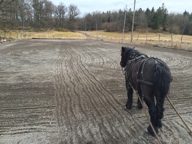 Det har blivit tömkörning för min del 2 av 3 dagar. Just för att man kan vara på ridbanan om det är inte kolmörkt vid 20.30, helt underbart.