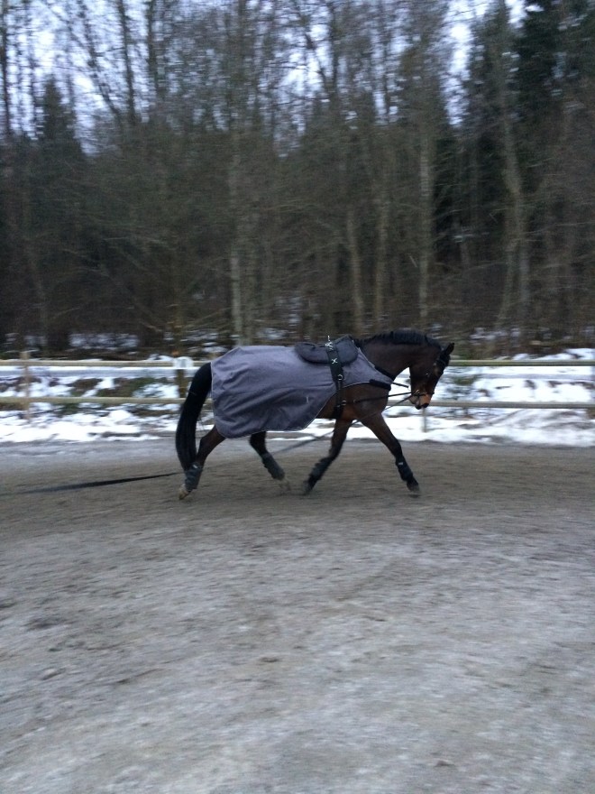 Sen var det dags att traska hemåt. Det blev lite trav och galopp på vägen hem på grusvägarna. Som en slutmätt ponny, färdig för att inta tävlingsbanorna igen.