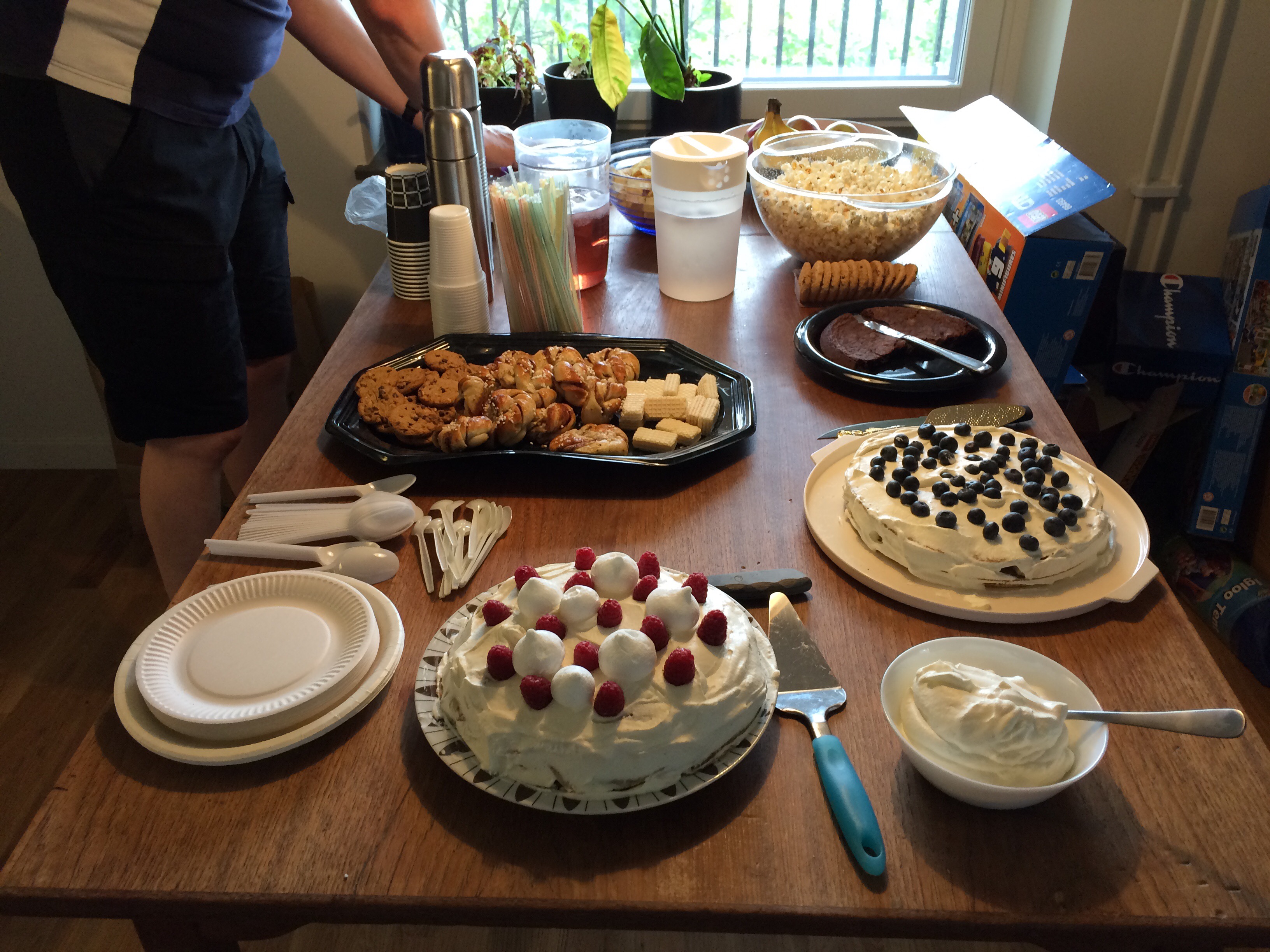 Dagens uppstickare var den glutenfria knäckbottentårtan. Riktigt goda knäckbottnar och med grädde, hallon och banan emellan.