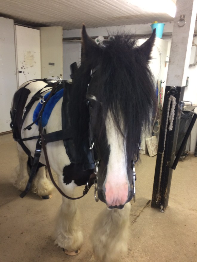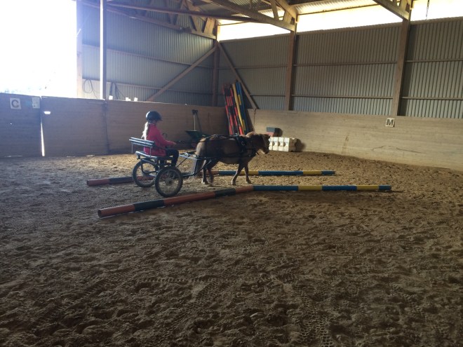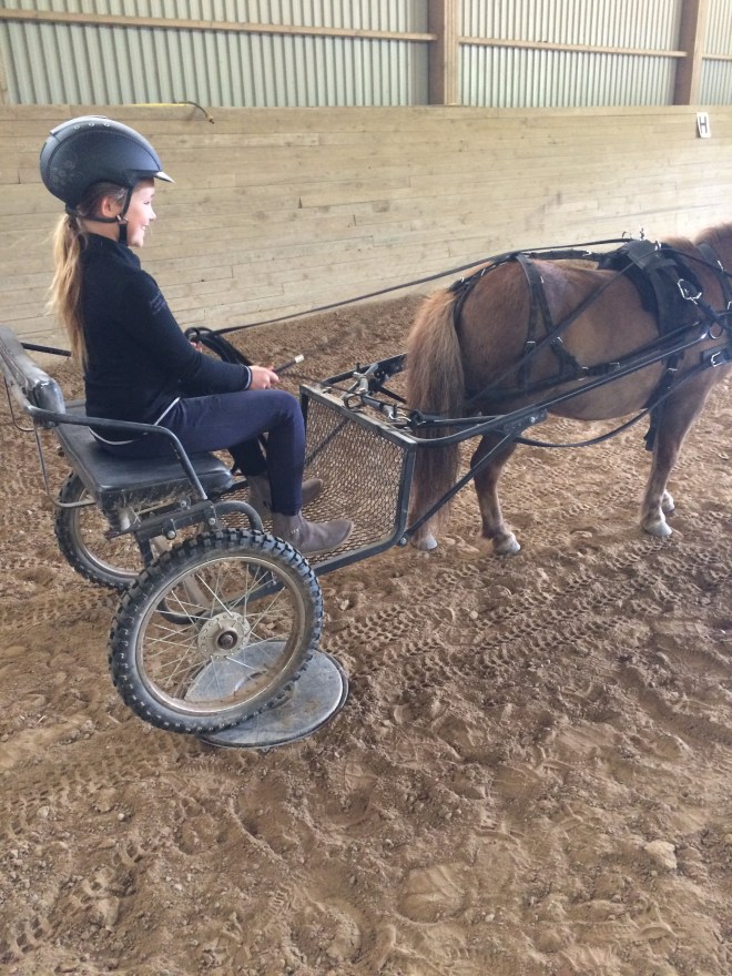 Efter det gick vi in i ridhuset och körde lite brukskörning.