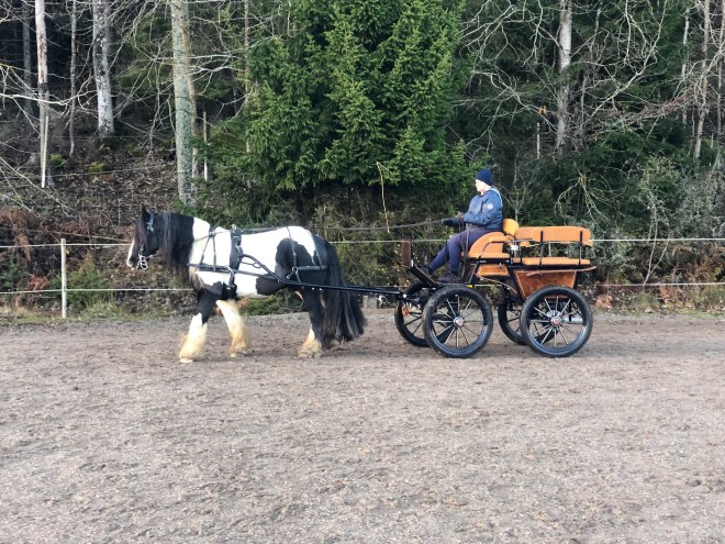 I lördags var jag förbi Bränninge igen och vi fortsatte inkörningen med Lillan. Denna gång fick hon dra vagnen runt på ridbanan, dock utan brösta och draglinor. Men de tar vi nästa gång 😀