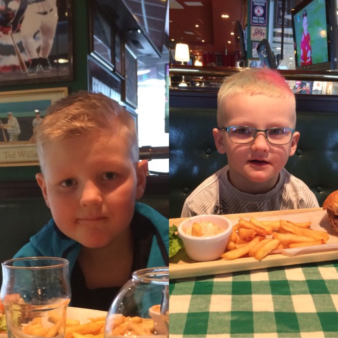 Nyfriserade grabbar var ett måste och det fixade vi i måndags och efter det tog vi en lunch på O’Learys i Liljeholmen.