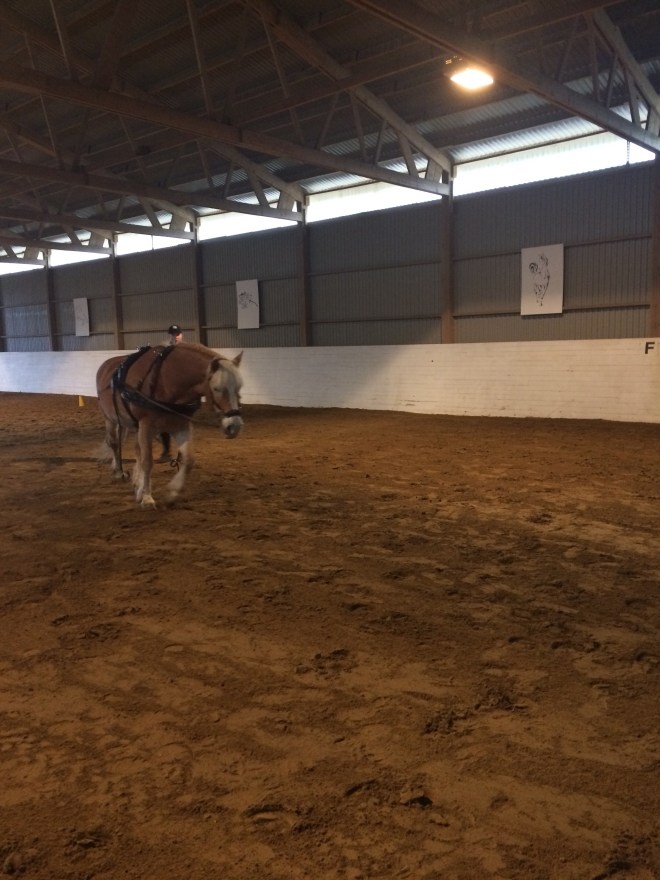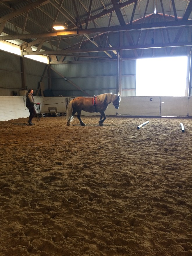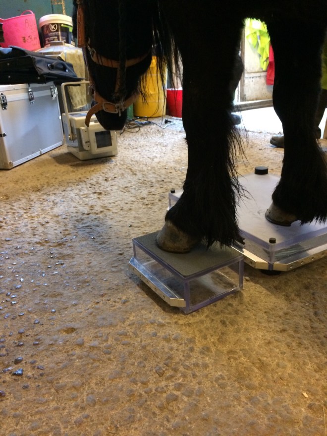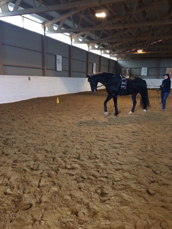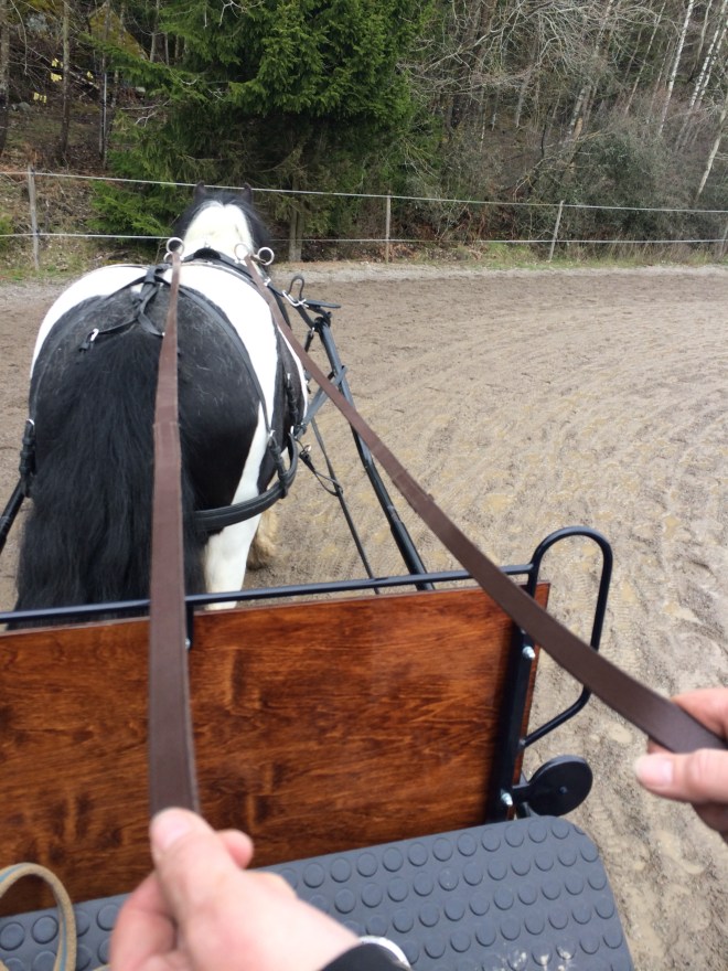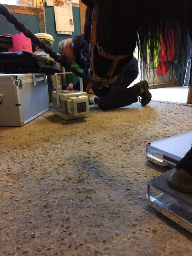 I skritt o trav såg allt fint ut och inga böjreaktioner. Men i höger galoppen finns inte drivet framåt. Vi försökte lägga pusselbitarna på plats och veterinären blockerade höger fram, långt ner för att se om det gav resultat. Det gjorde det.