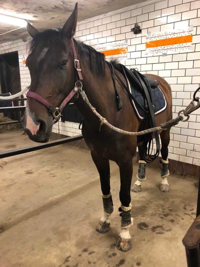 Idag var det återigen Nennes tur att få gå ett tömkörningspass på banan. Idag blev det mycket övergångar och tempoväxlingar för damen. Vilket hon tyckte var väldigt jobbigt 😊