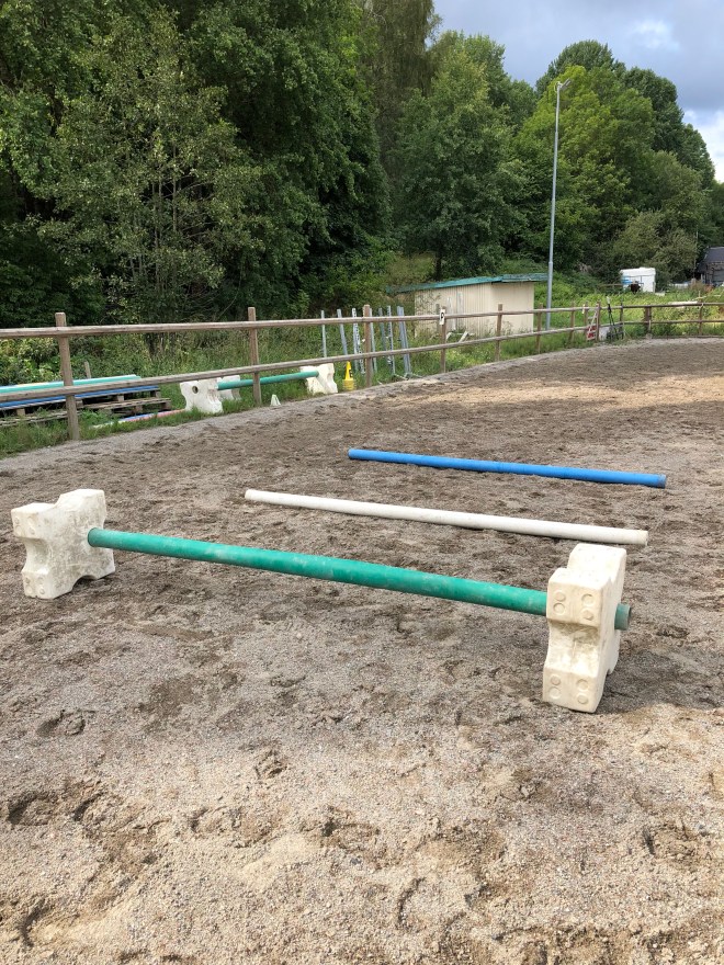 Idag fick Nenne lite gymnastikövning i tömkörningen. Hade tre bommar som hon fick jobba över och runt. Jobbigt men kul tyckte vi båda.