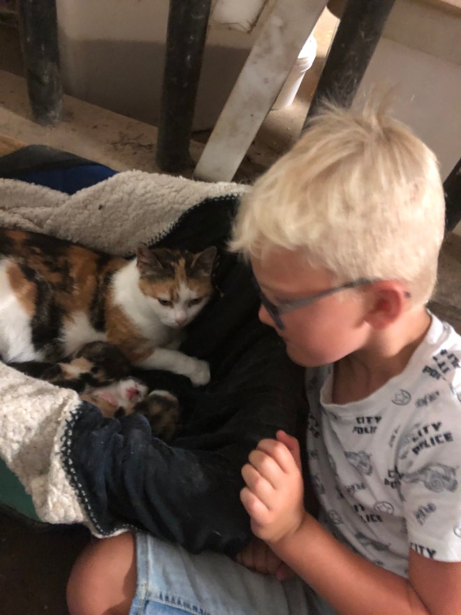 Han som sitter upp. Hela familjen är taggade på att han ska få komma hem till oss.