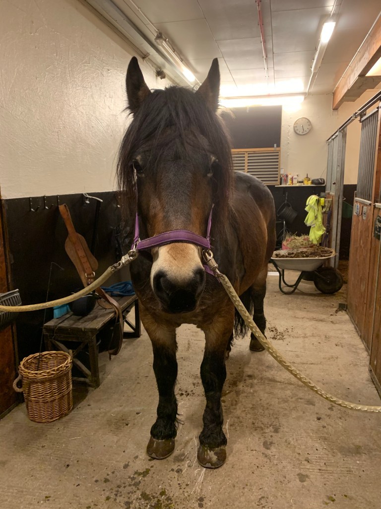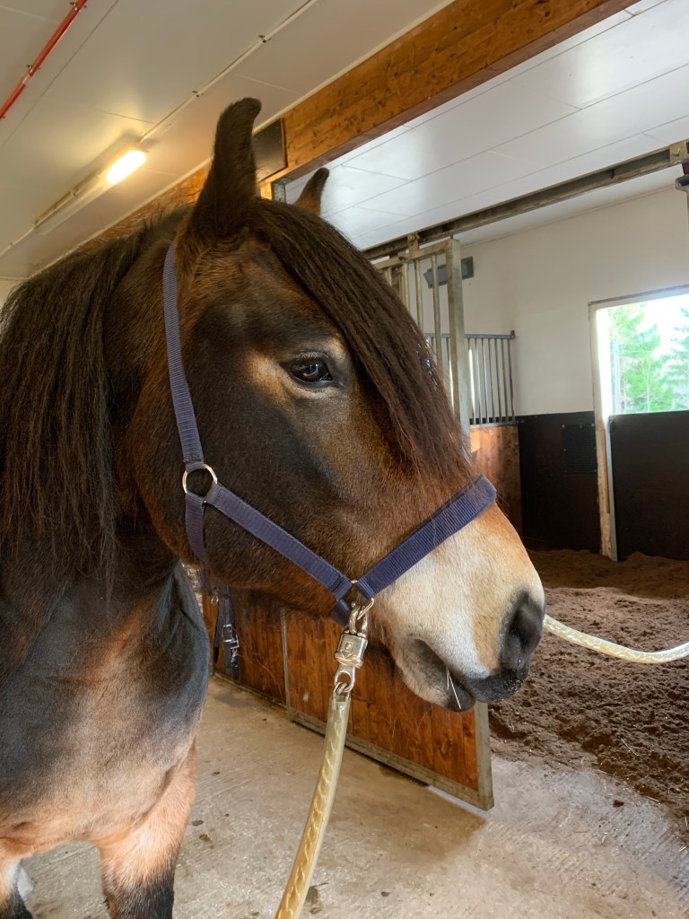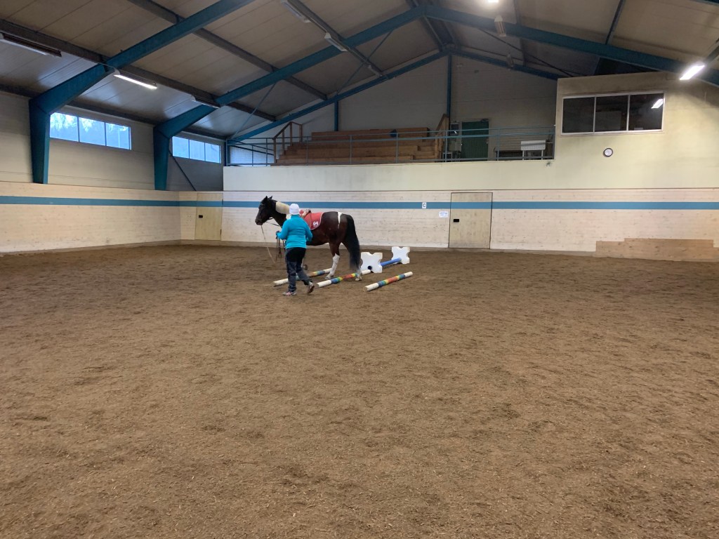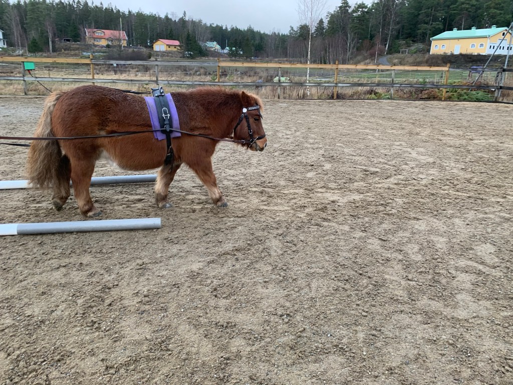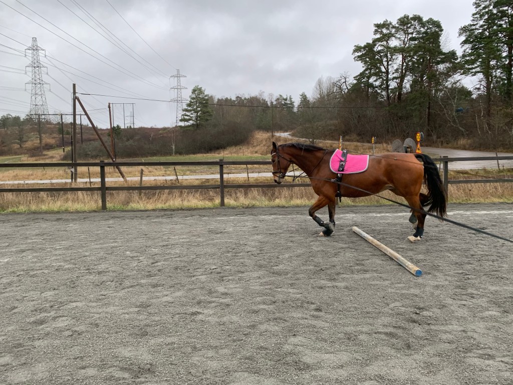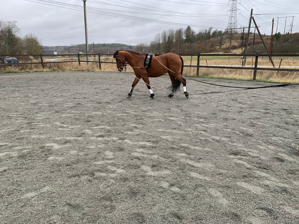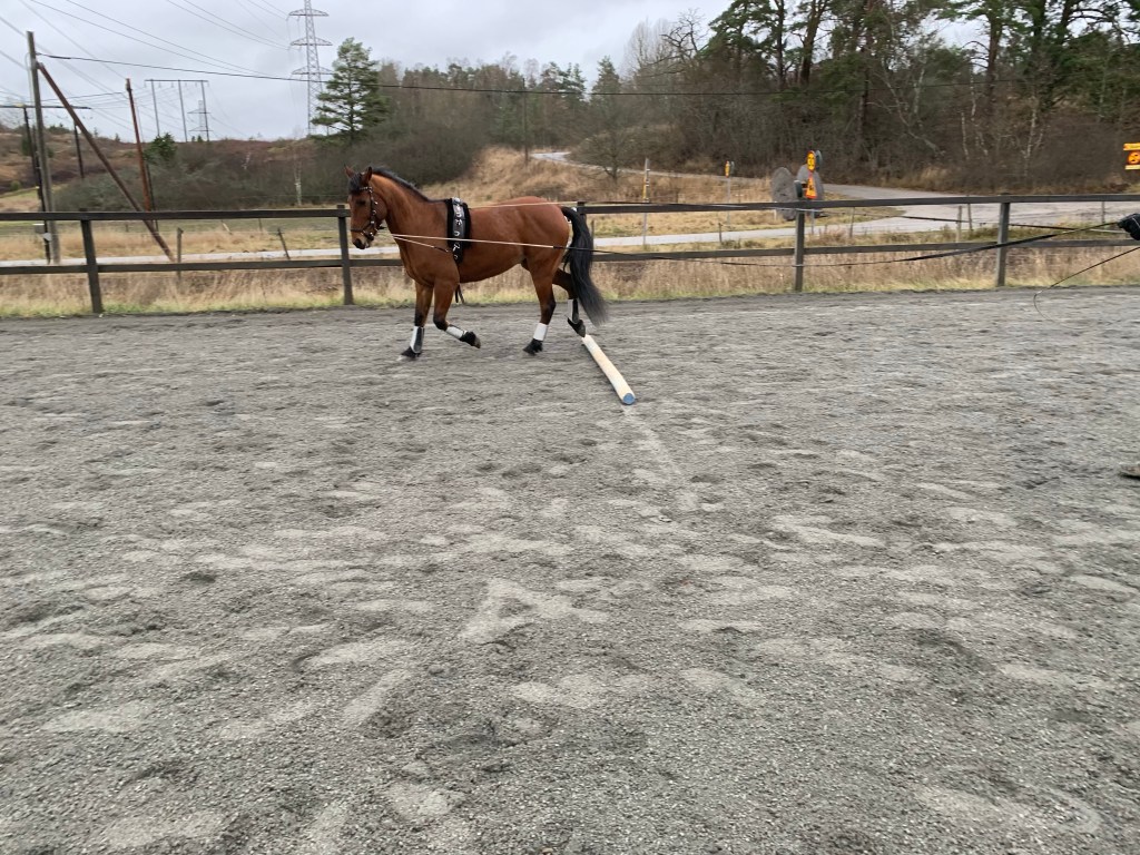 Det blev bland annat rakriktning och haltträning med bommar även lite sidvärts och trav.