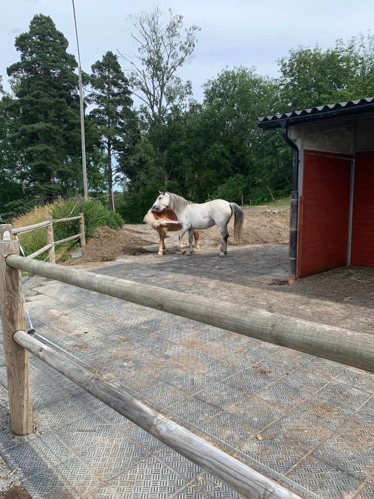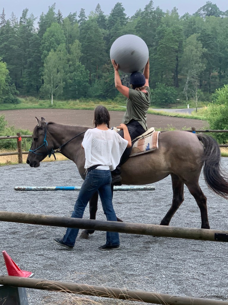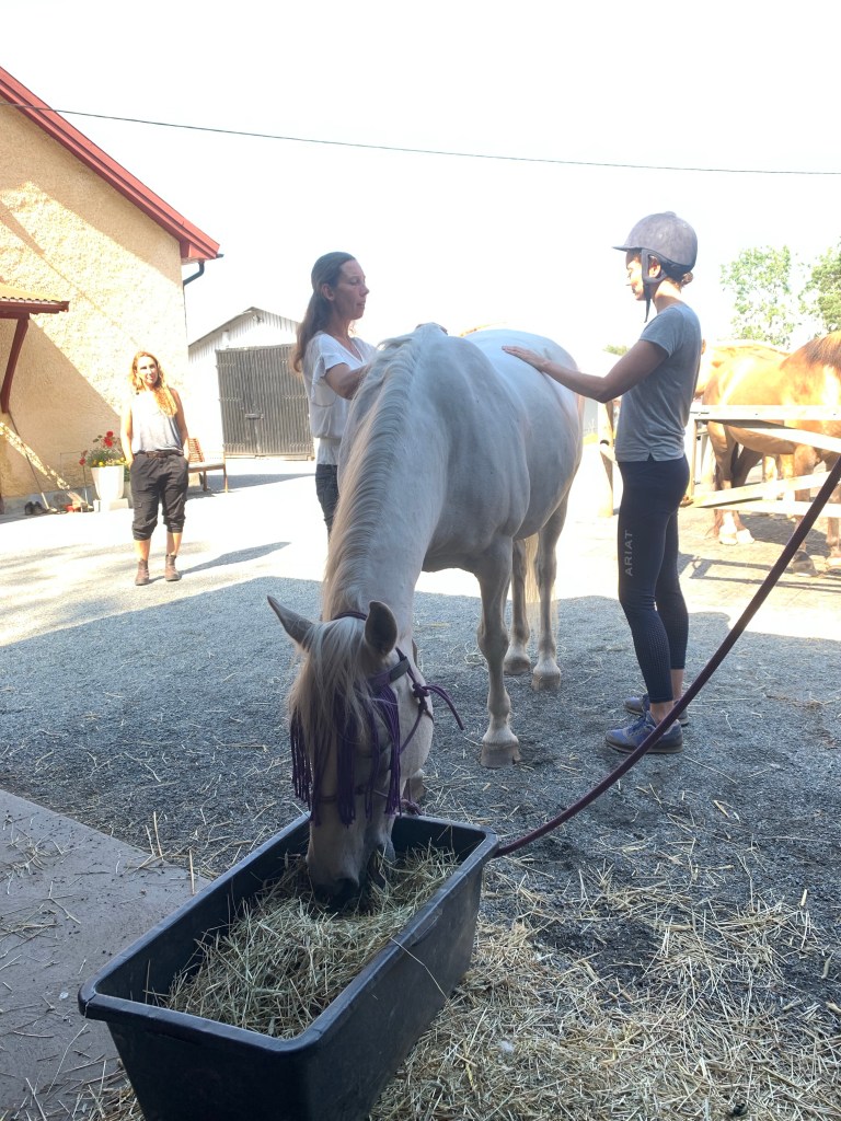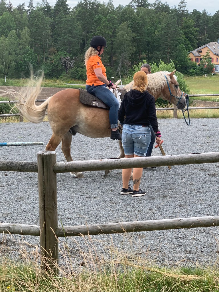 När vi bokade datumet den 14/7 hade nog ingen av oss en tanke på att det kunde vara 30 grader varmt. Detta var ett faktum när dagen väl kom. Att få vara i ett ridhus var jag rätt tacksam över, men att få en stor fläkt, kall saft och hembakta bullar är helt fantastiskt. Härliga ekipage både nya och gamla trotsade värmen och tränade flitigt.