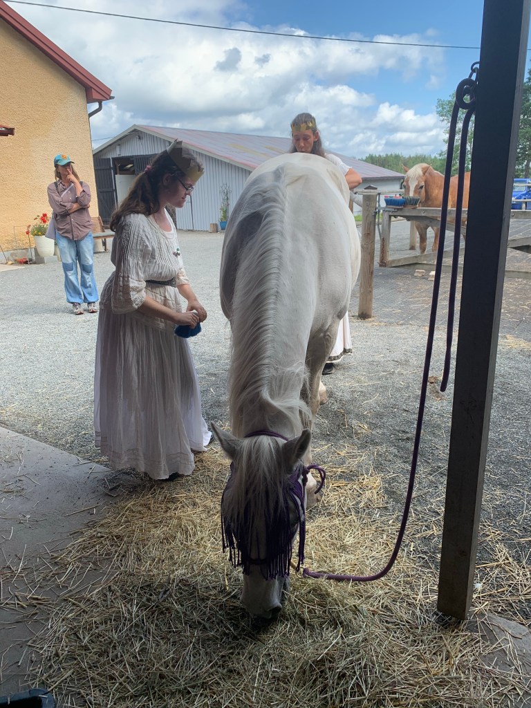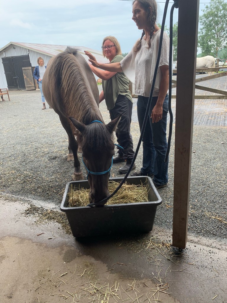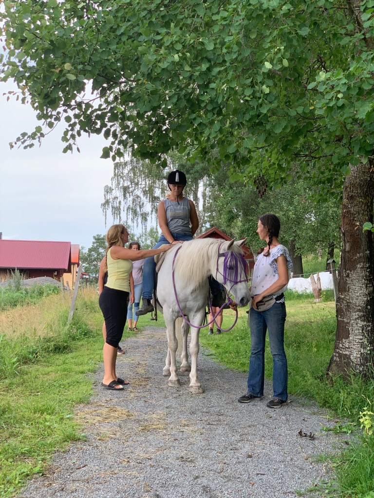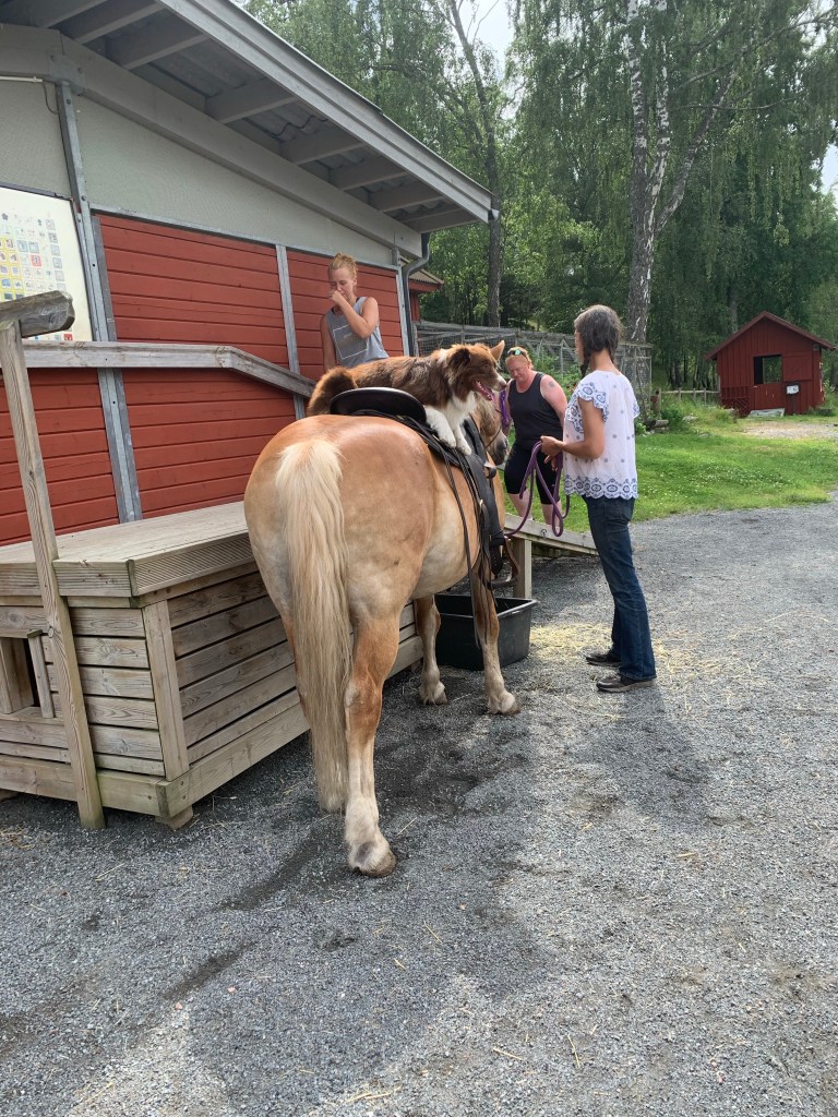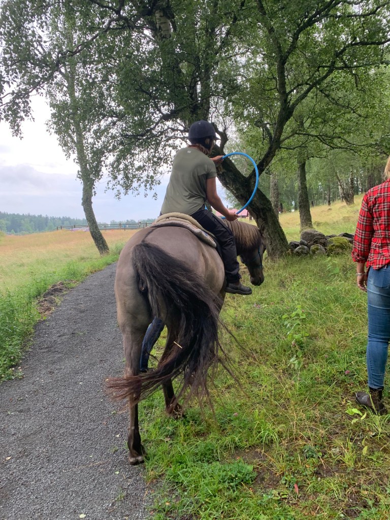 När vi bokade datumet den 14/7 hade nog ingen av oss en tanke på att det kunde vara 30 grader varmt. Detta var ett faktum när dagen väl kom. Att få vara i ett ridhus var jag rätt tacksam över, men att få en stor fläkt, kall saft och hembakta bullar är helt fantastiskt. Härliga ekipage både nya och gamla trotsade värmen och tränade flitigt.