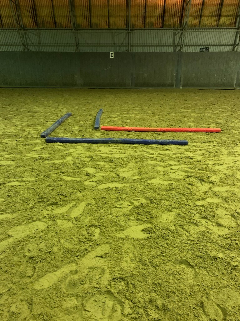 Dagens ekipage fick träna med att gå genom L:et och även över bommarna. Blandade L:er med mycket övergångar skritt, trav, halt. Även lite öppna fick ekipagen arbeta med.