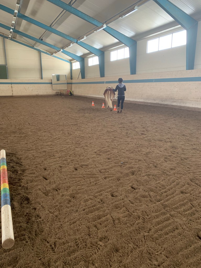 Att svänga mellan koner kanske man inte tycker är så svårt. Men avståndet mellan konerna är det som gör det. Ska hästen också hitta alla benen och ny ytter, ny inner så behöver det gå långsamt. Att lägga in en halt när yttersidan inte orkar för att hästen hinner stanna upp och hitta ny balans och hinna svänga rätt och hinna hitta bakbenen i övningen.