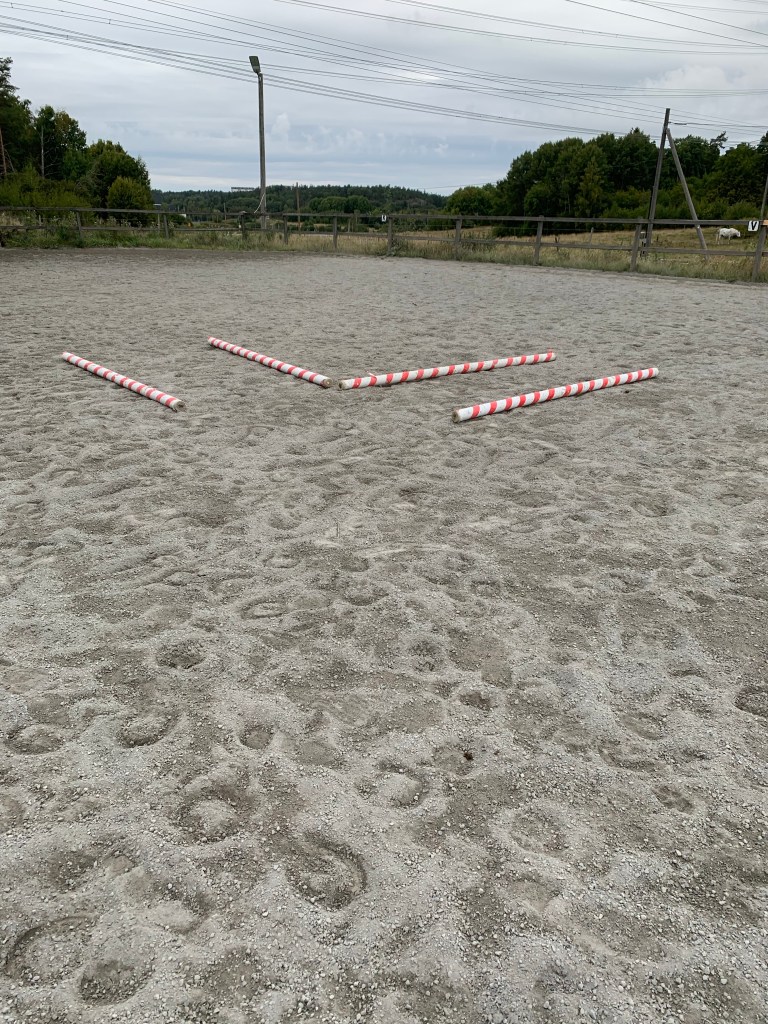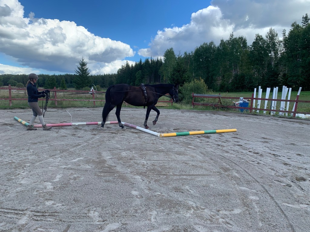 Denna gång fick de övningar som korta och länga skritten, öppna, bommar och halter. Det viktigaste här är att det ska bli rätt intervall för hästen så det blir uppbyggande och inte nerbrytande.