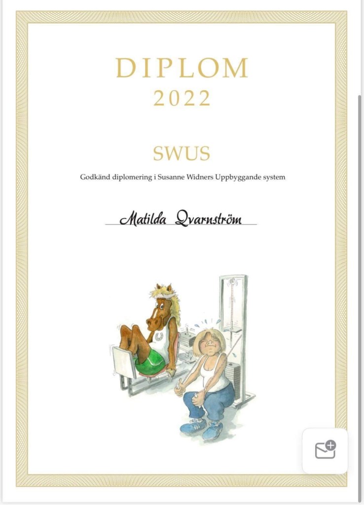 Dagen avslutades på Berga gård i Enhörna med uppbyggande träning. Här har vi ett bra bevis på hur effektiv och bra den uppbyggande träningen är. När de var på återbesök hos veterinären och de var helt förvånade över förändringen hos hästen.