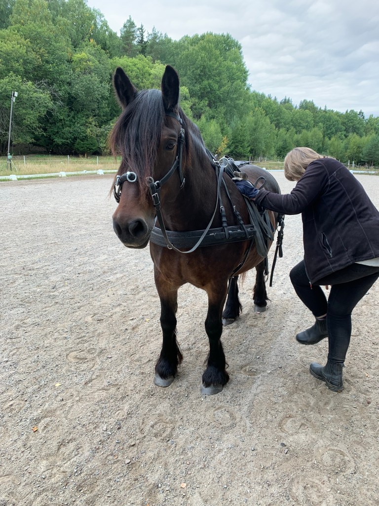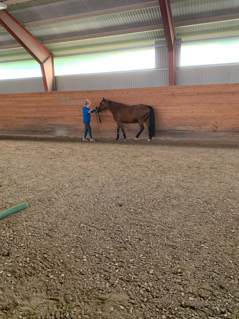 Sen fick jag bekanta mig med en unghäst på 3 år. Jag tycker det är så kul att jobba med unghästar.