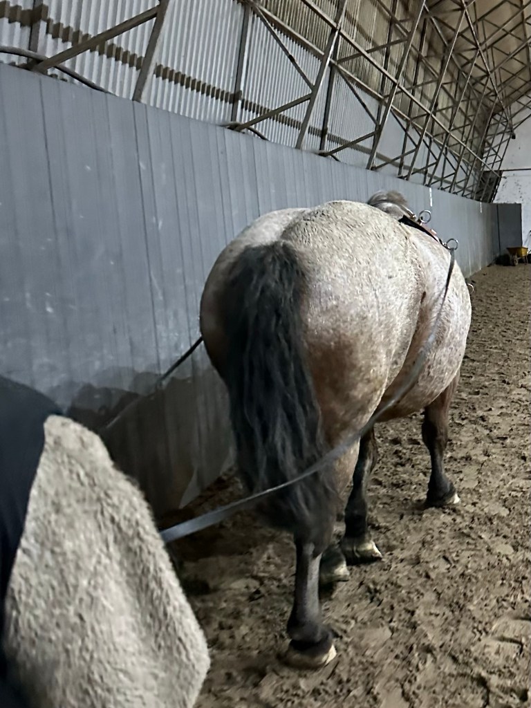 Sen har jag har intensivkurser med två hästar på Södertörn Ryttarcenter. Först ut får Blomman en ardenner, unghäst, målet är inkörning. Men först måste man lära sig att våga gå främst, svänga och lyssna på kusken. Så duktig hon har varit under denna vecka.