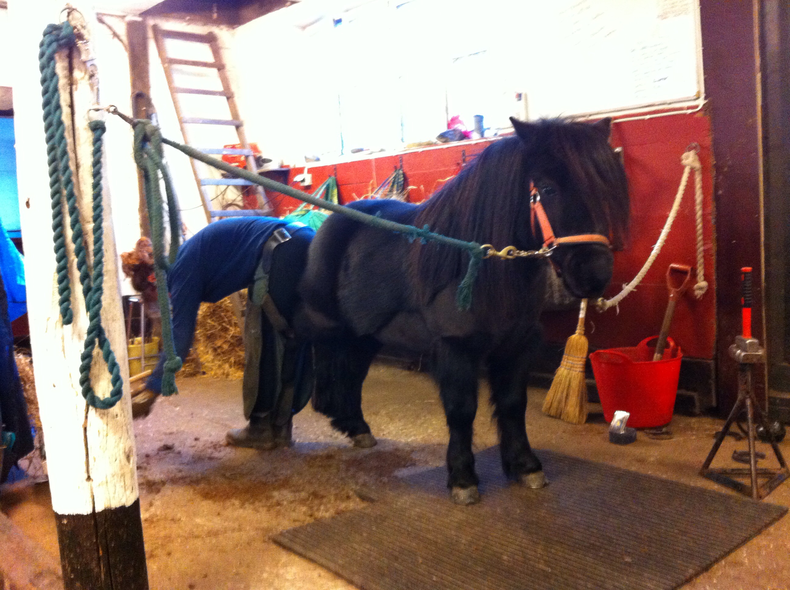 Min hovis har en hel del shettisar som hon skor så hon har börjat anpassa sina verktyg och hjälpmedel till ponnyben. Det gäller att vara lite påhittig 🙂