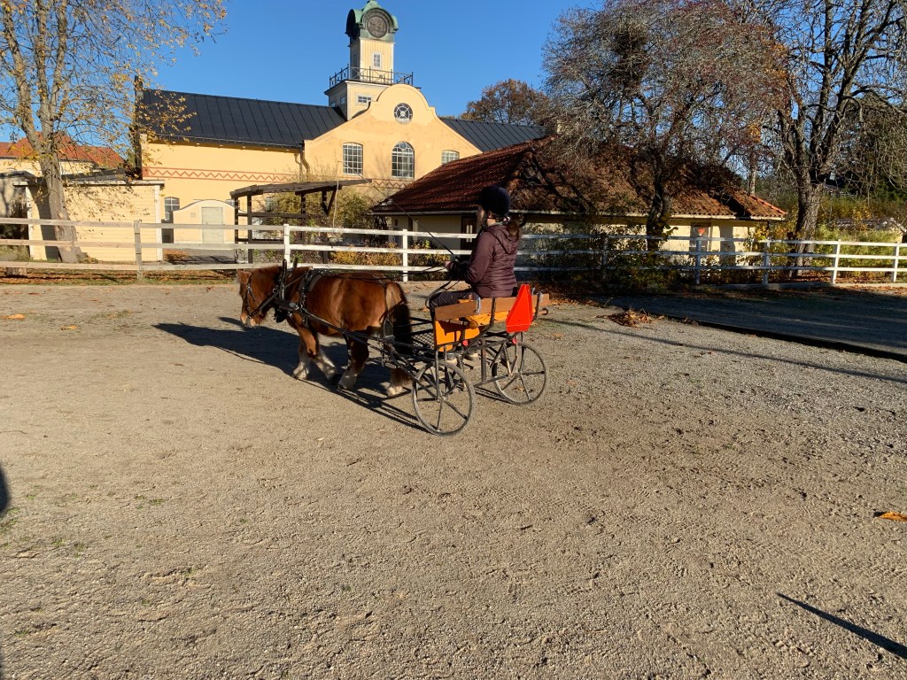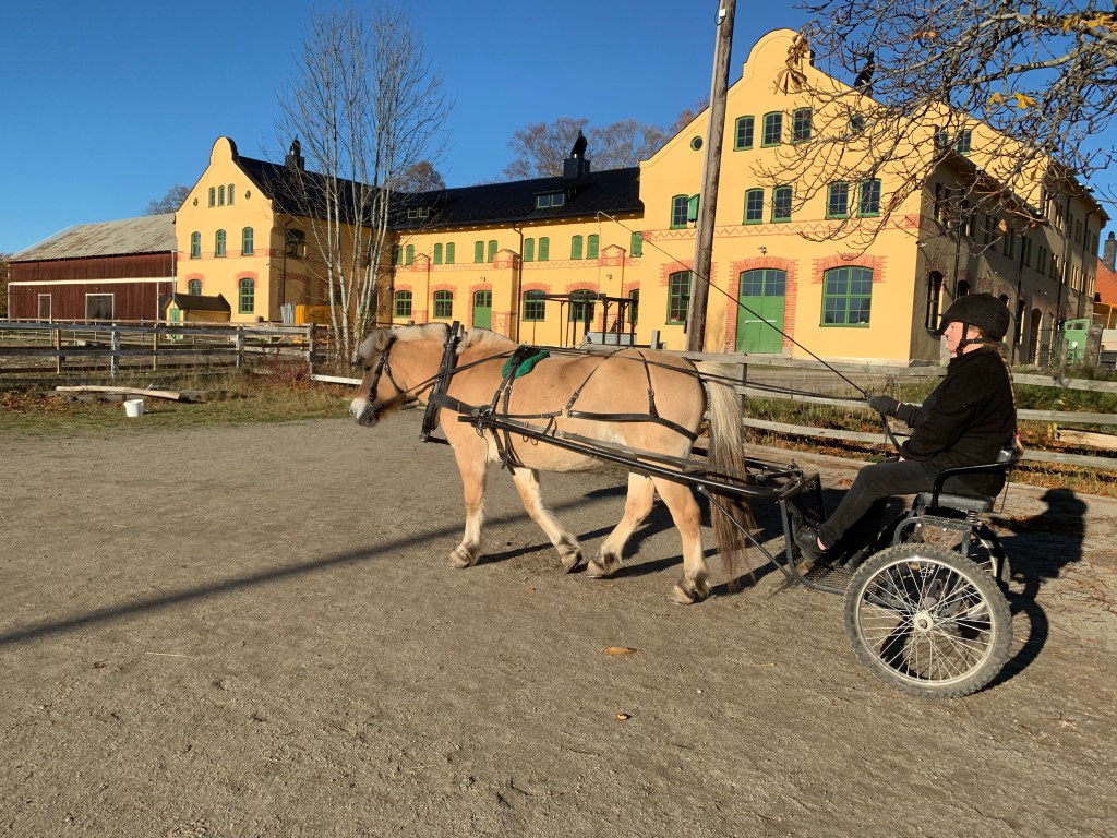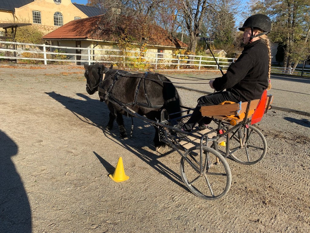 Igår fredag blev det en heldag på Södertörn med många härliga ekipage. Bland annat så provade vi en annan vagn till Blomman. Då insåg vi att draglinorna blev alldeles för långa till inkörningsvagnen.