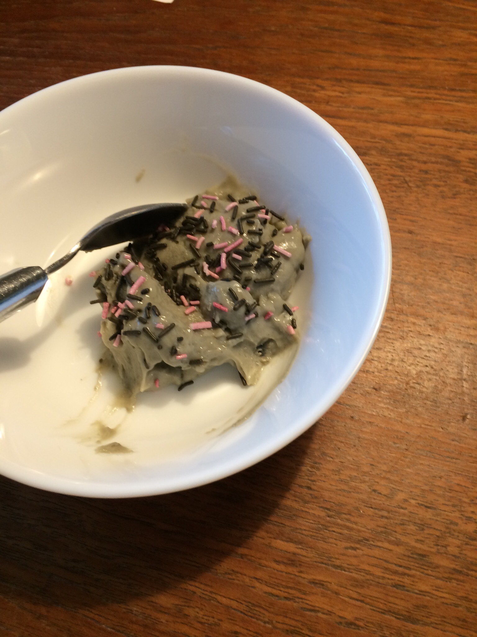 Blev inspirerad av en receptfilm på Facebook från Svensk mat att testa att göra glass med djungelvrålssmak.