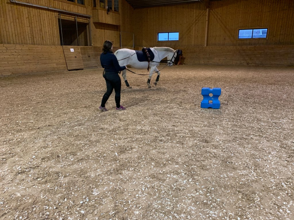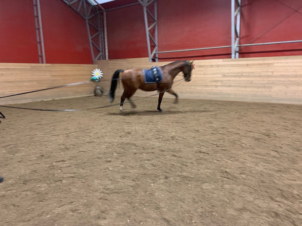 Det blev bland annat rakriktning och haltträning med bommar även lite sidvärts och trav.