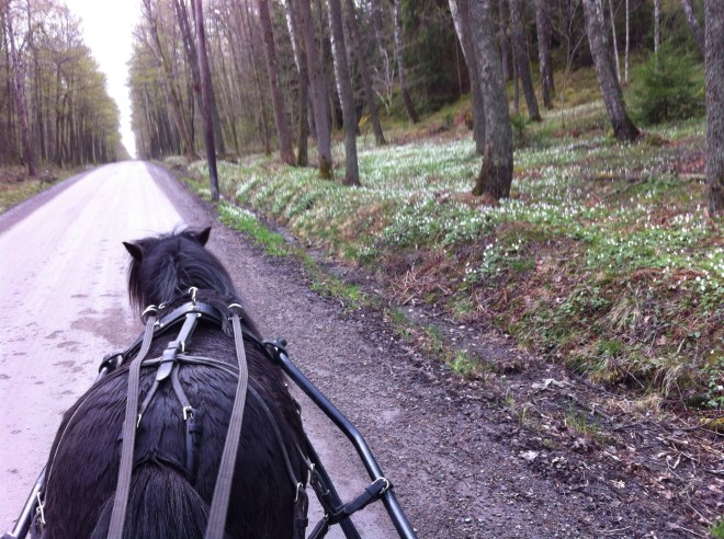 Igår blev det en långtur ända ut till stora vägen och då körde vi igenom vitsippelandet 🙂 Så mycket vitsippor, så vaket.