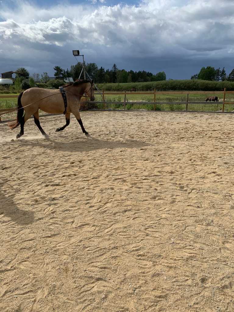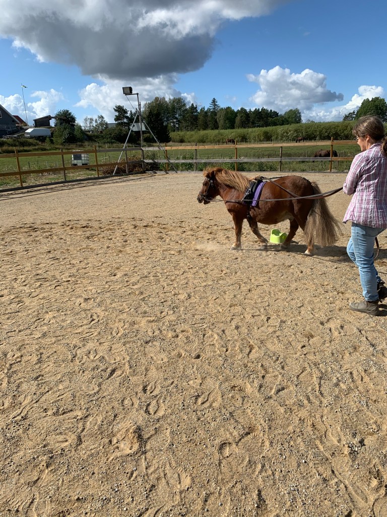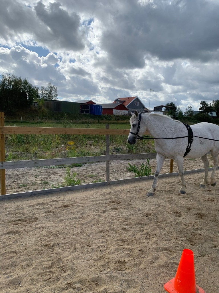 Igår hann jag ut och köra ett kort och intensivt pass på banan mellan regnskurarna. Göran var lite stel i början och man märker vilken skillnad det är från att de går på bete och rör sig hela tiden jämfört mot nu när de står installade. Det märks på hans humör oxå att han var mer ”nöjd” över att komma in en stund i somras jämfört mot nu. Men det är väl en period av omställning nu.