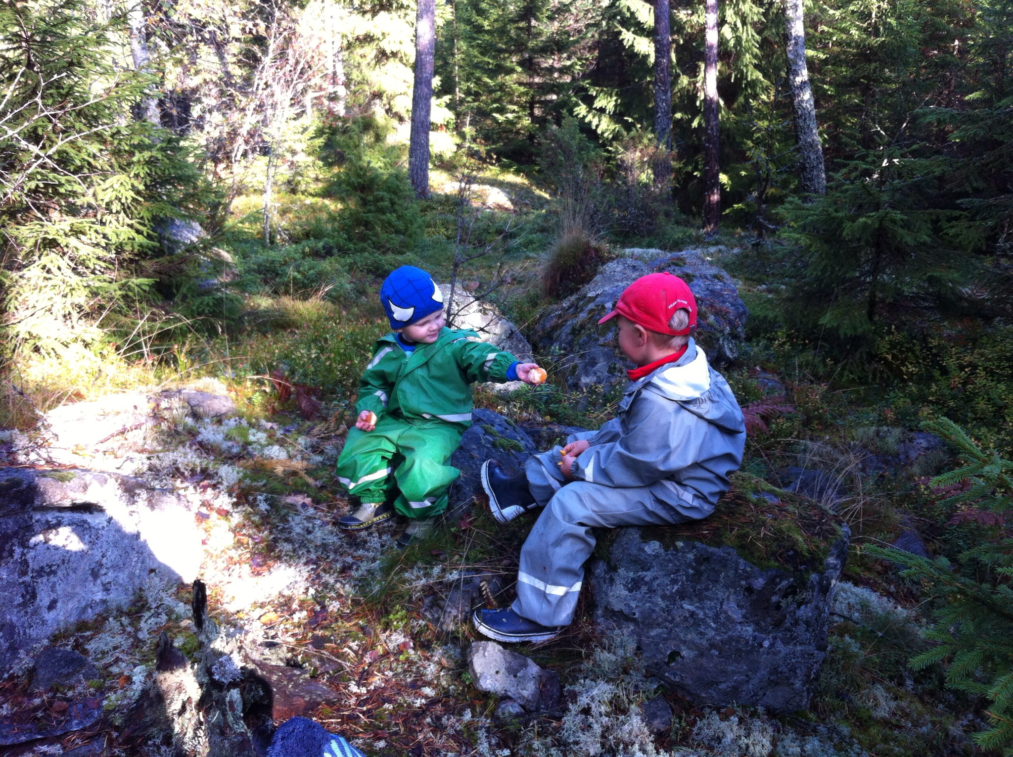 I lördags fick han en vilodag medan vi var ute och plockade svamp i mängder. Det är kul att plocka svamp när man trampar på dem för att det finns så mycket. Barnen orkar ca 2