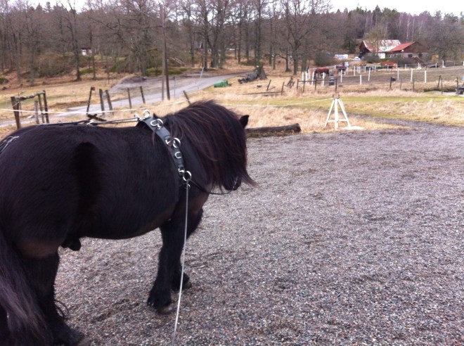I lördags tömkörde jag honom och jag la fram två bommar som cavalletti tänkte jag, han tog det som ett hinder och hoppade 🙂 i stort sett hela passet, det var mot slutet som han faktiskt började använda dem som markbommar.