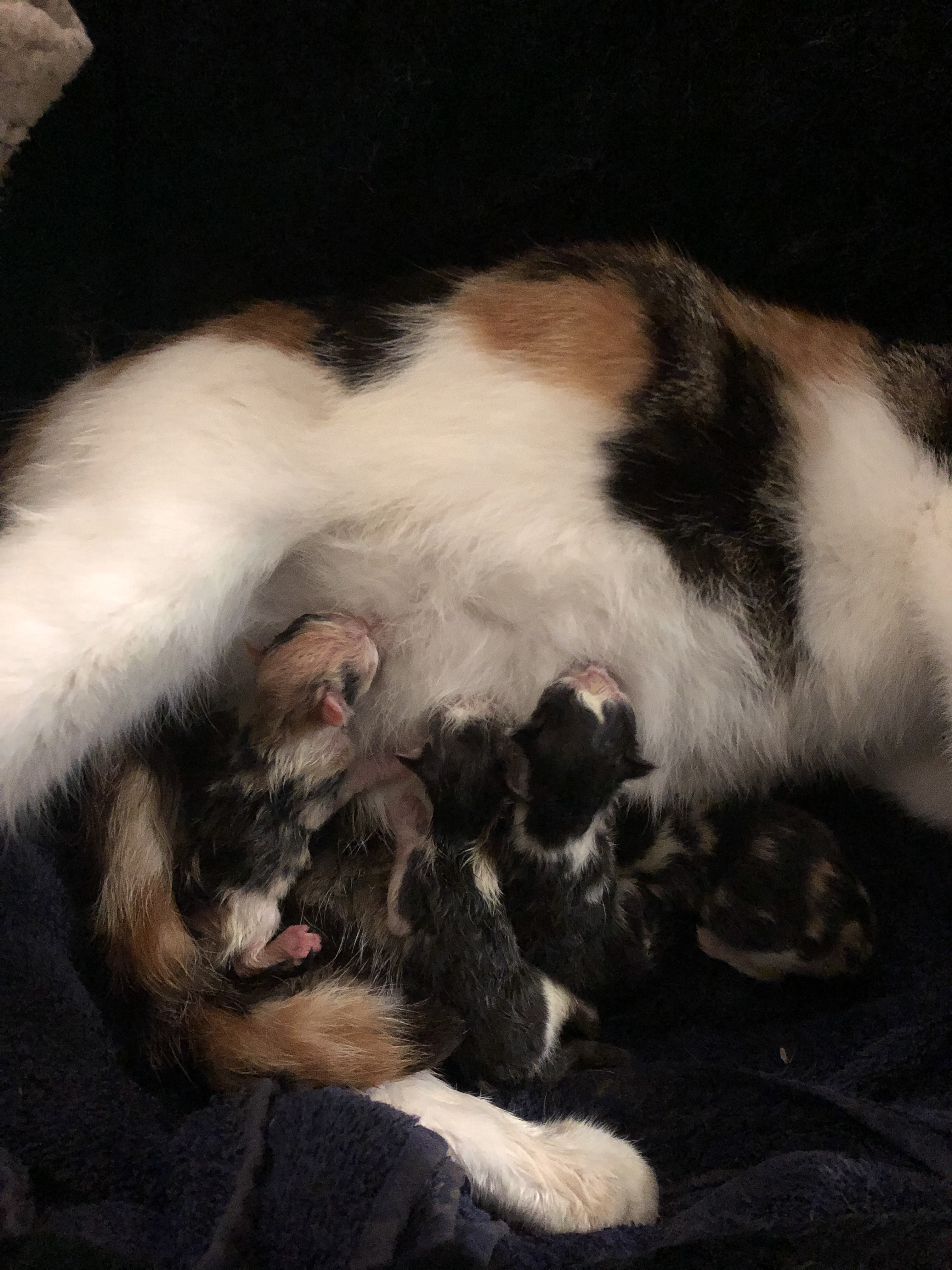 Så himla duktig kattmamma. 4 små kattungar blev det.