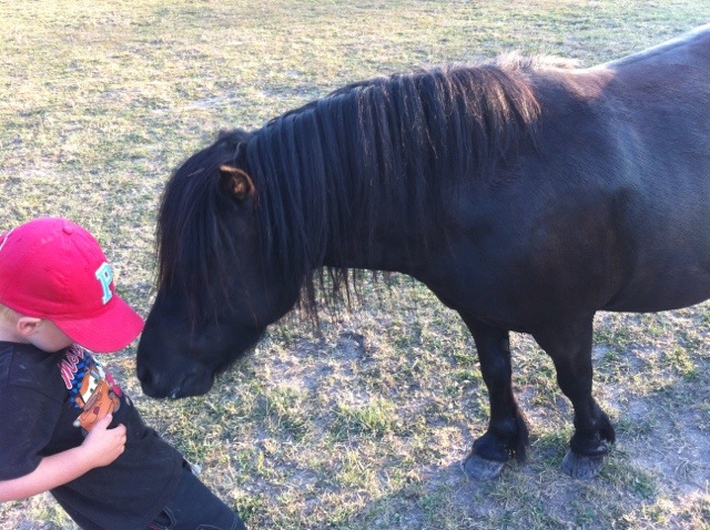 Skönt tyckte Göran och han piggna på sig. Han har ju fortfarande en del vinterpäls kvar så det var nog ganska varmt för en svart shetlandsponny igår. Efter allt stallfix och borstning ville barnen rida en sväng, även Marcus tyckte det var kul. Han har tyckt det varit läskigt förut, men även han börjar bli stor 🙂